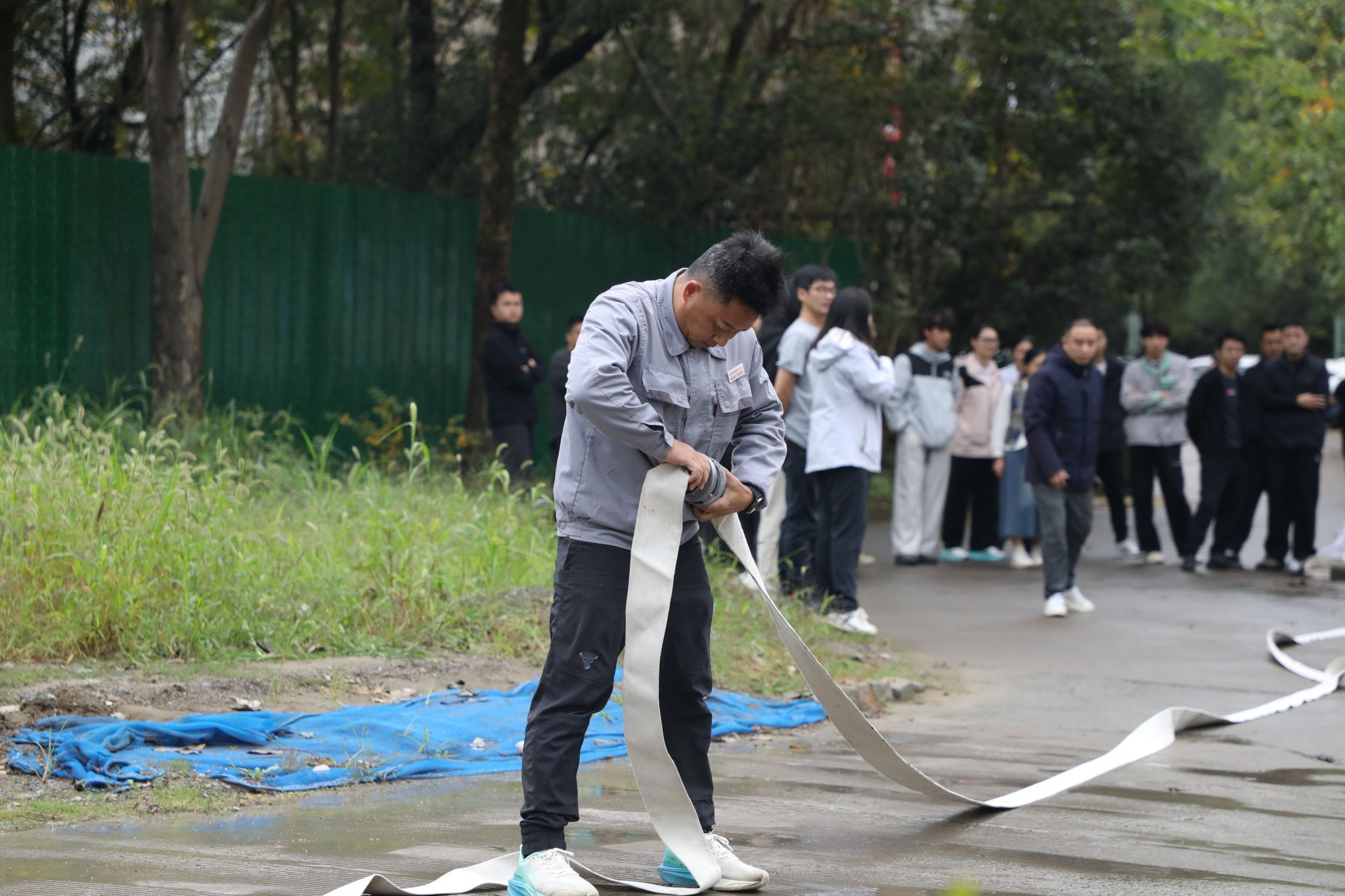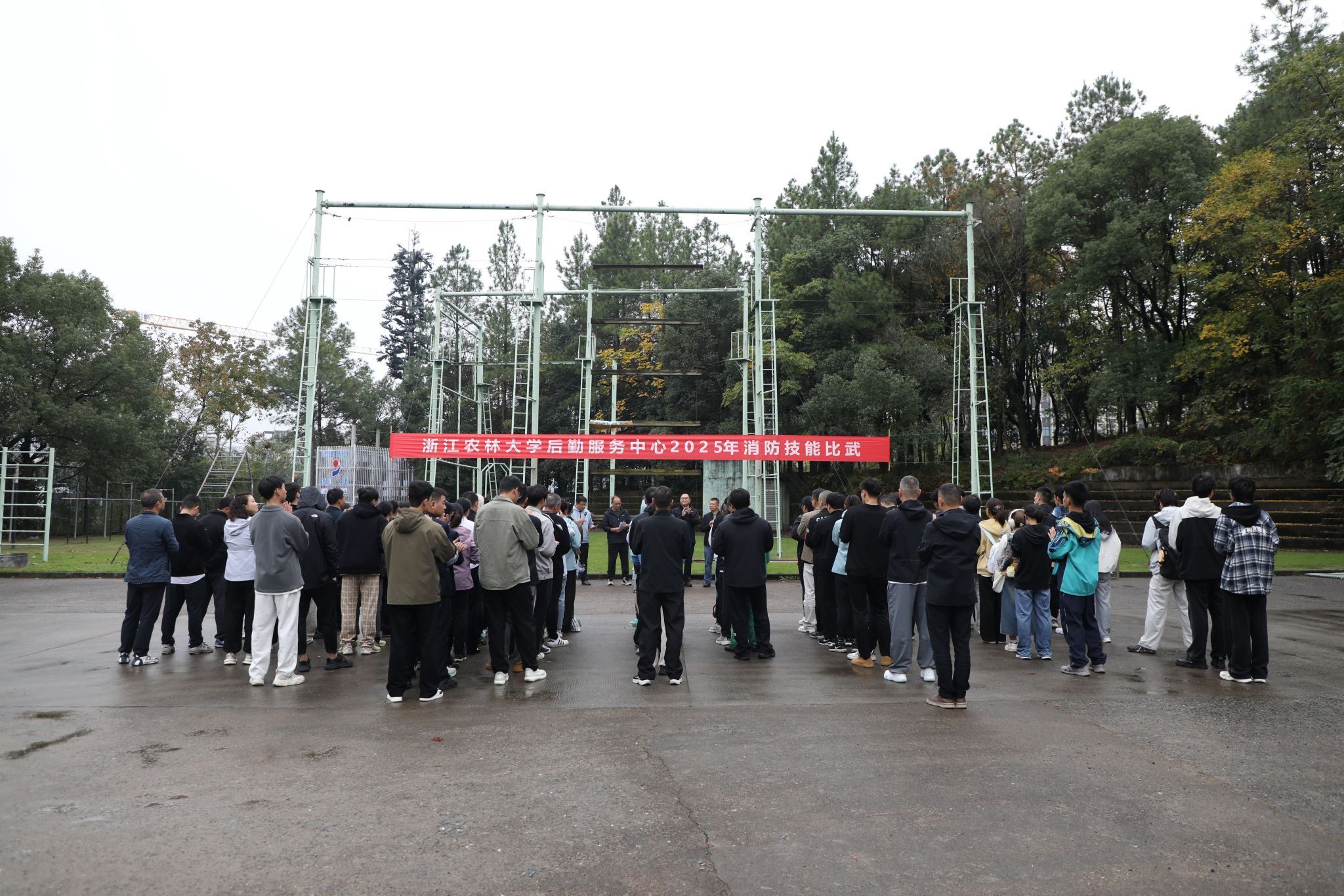 11月8日,后勤中心2025年消防技能比武在东湖校区开赛。后勤各部门员工代表、学生代表组建的22支队伍,80余名选手同台竞技。校保卫部、后勤中心相关负责人参加活动。