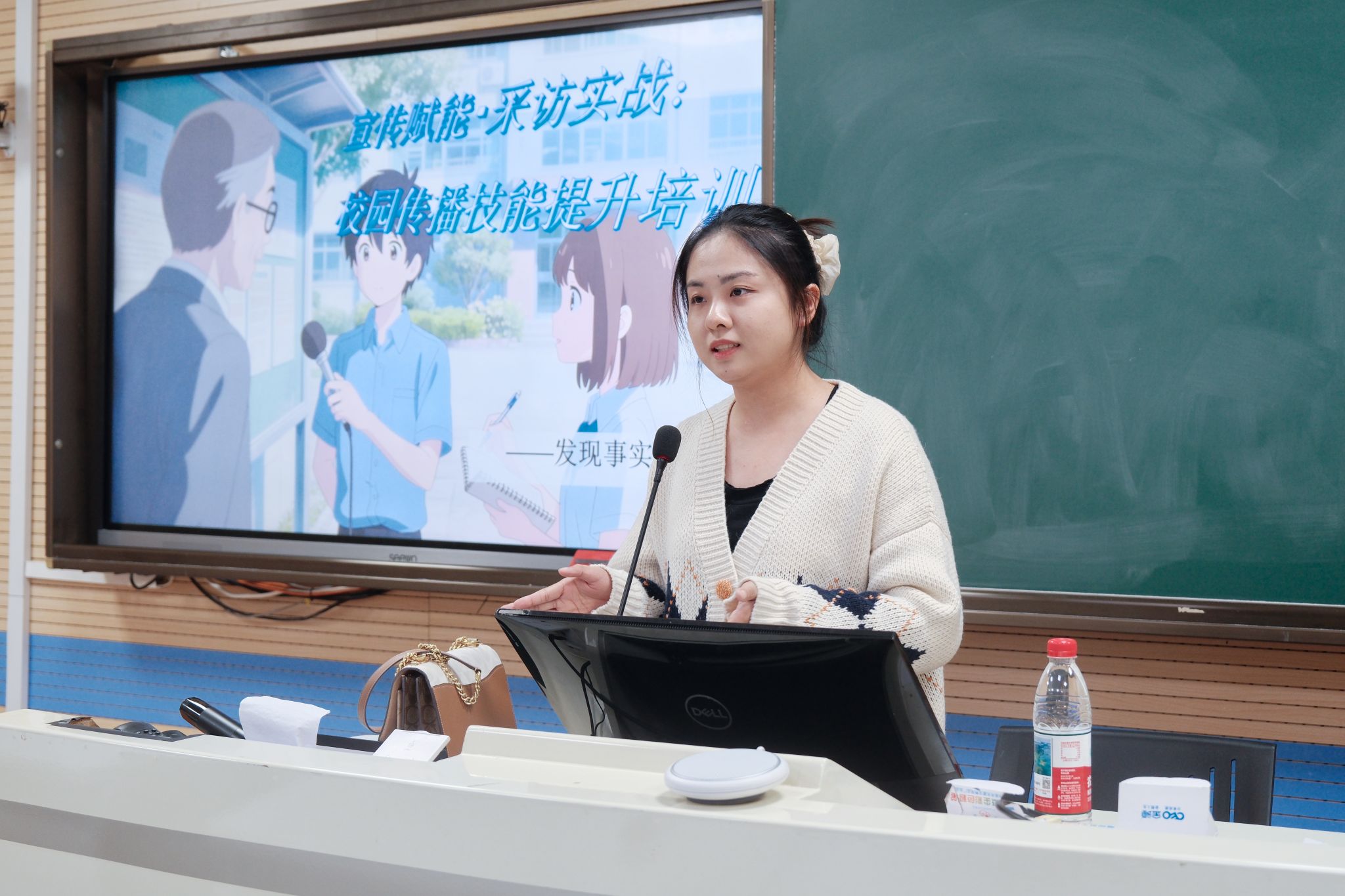 徐可为结合自身从《萧山日报》带领小记者团,到萧山市南都小学担任语文老师,再到成为学校大队辅导员、主管宣传部门的丰富经历,围绕新闻策划、宣传技巧与采访实务进行了分享。讲座中,她以“多尝试、敢突破”为核心观点,鼓励在场同学“不要给自己设限”,许多看似艰巨的任务,往往能在持续努力中迎来转机。