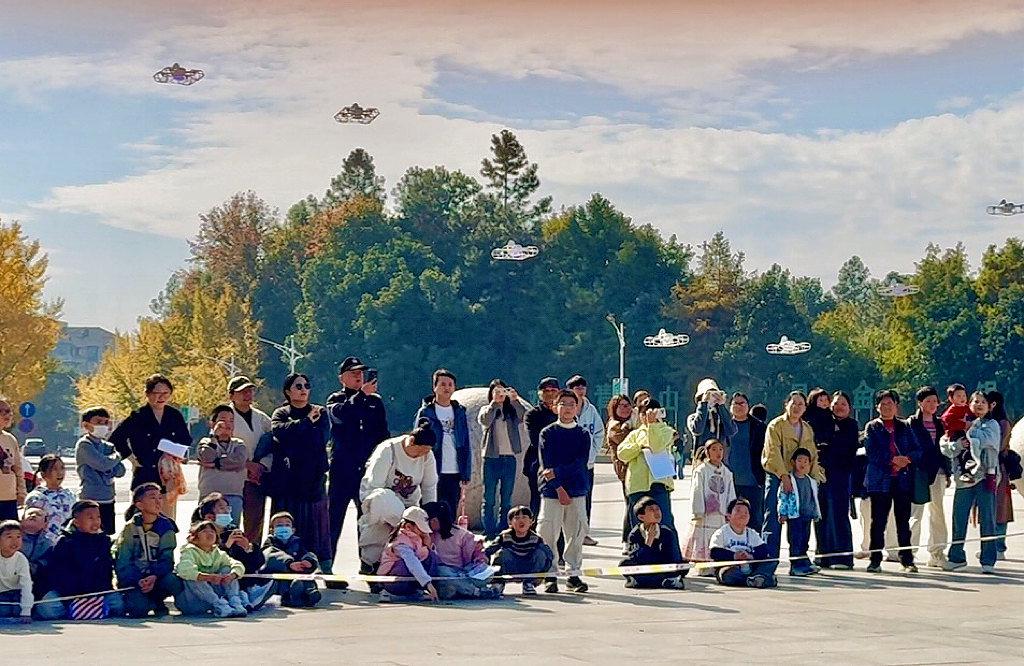 “无人机初体验”环节,将学员们的兴趣引向广阔的科技领域。学员们观赏无人机表演,学习基础的飞行原理与使用场景,近距离感受起飞、转向等动作,现场气氛热烈。