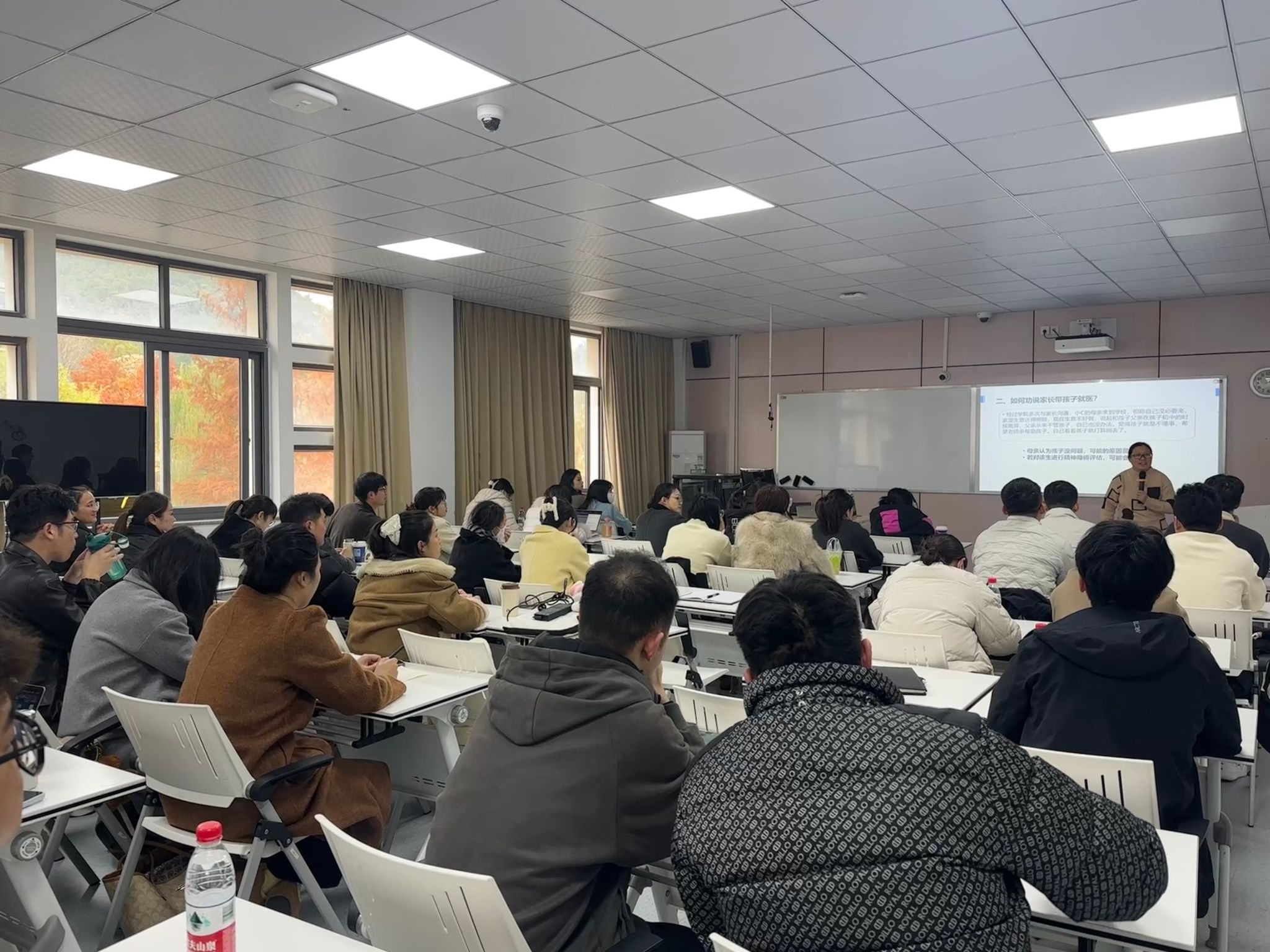 培训内容紧密结合BEAT365学生工作的实际情况,涵盖了心理障碍的识别评估、常见心理问题的应对策略、家校沟通技巧以及校园心理危机干预等多方面内容。主讲人通过理论讲解与案例分析相结合的方式,系统介绍了焦虑障碍、抑郁障碍、双相障碍等大学生常见心理问题的核心特征与识别要点,并结合《精神卫生法》相关条款,明确了辅导员在心理助人过程中的职责边界与转介流程。