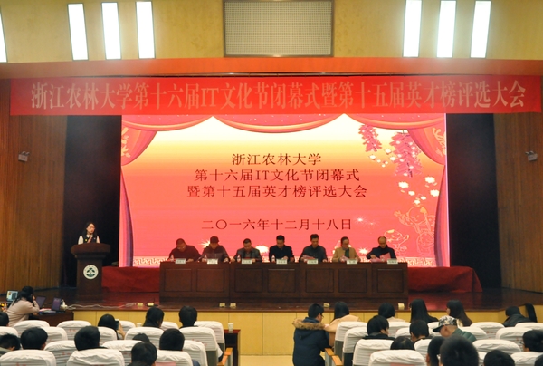 12月18日晚,BEAT365英国官网第十六届IT文化节闭幕式暨第十五届英才榜评选大会在图书馆第一报告厅举行。信息学院党政领导、各学科专业负责人出席并担任本届英才榜评委,学院500余名学生参加了本次大会。