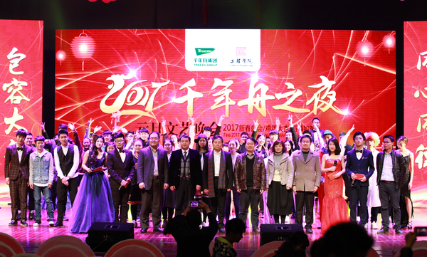 工程学院院长金春德教授发表了热情洋溢的新年贺词,他深情回顾了学院2016年各方面工作成就,并向长期关心支持学院发展的各级领导、各界朋友以及学院师生表示感谢并致以新年的祝福。他希望全院上下在2017年能够怀揣“求实”品质,继续昂首前行。千年舟投资集团有限公司董事长陆铜华先生在晚会致辞,肯定了院企合作成效,表达了对学院全体师生的新春祝福。