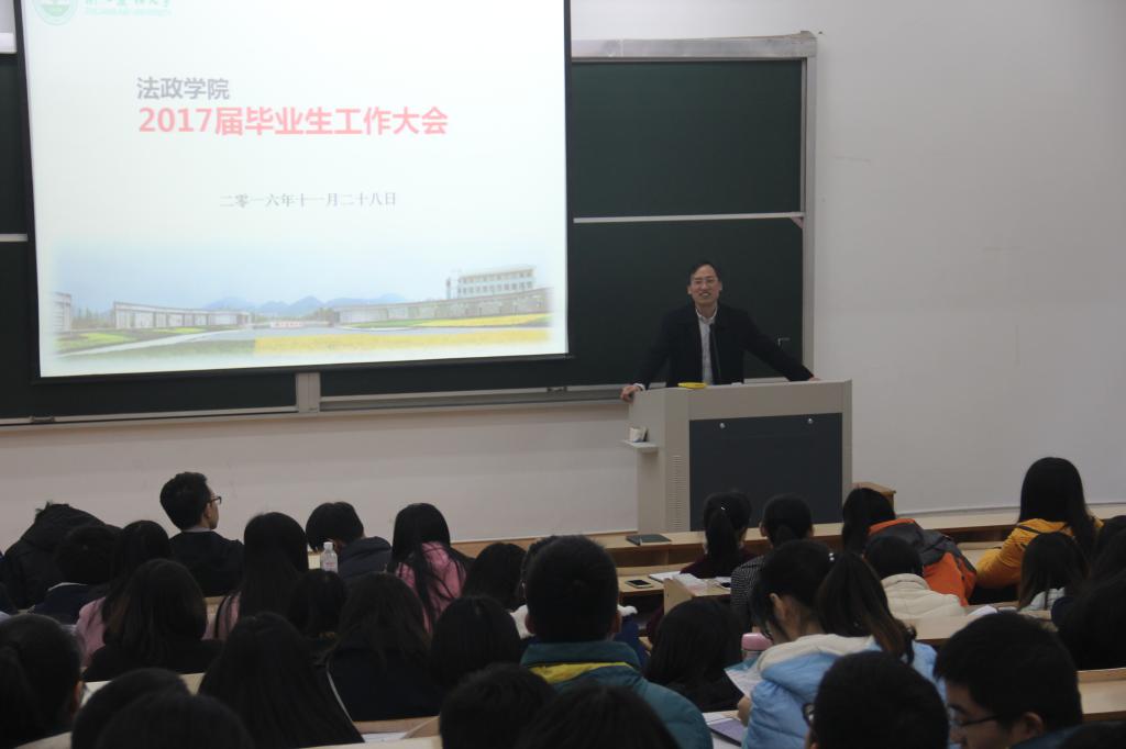 11月28日下午,法政学院毕业生工作会议举办。校就业指导中心老师、法政学院相关负责人及学院全体17届毕业生参与此次会议。