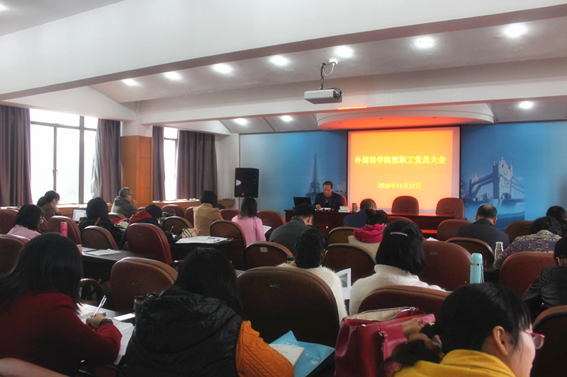 11月17日下午,外国语学院开展专题学习活动,学院党总支书记张敏生主讲,学院全体教工党员参加。