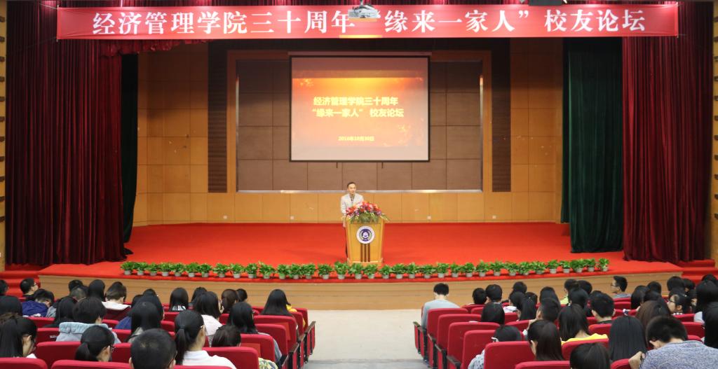 10月30日上午,经管学院举行院庆三十周年“缘来一家人”校友论坛。论坛活动由学生办负责人主持,学院辅导员及2016级新生参加了本次活动。