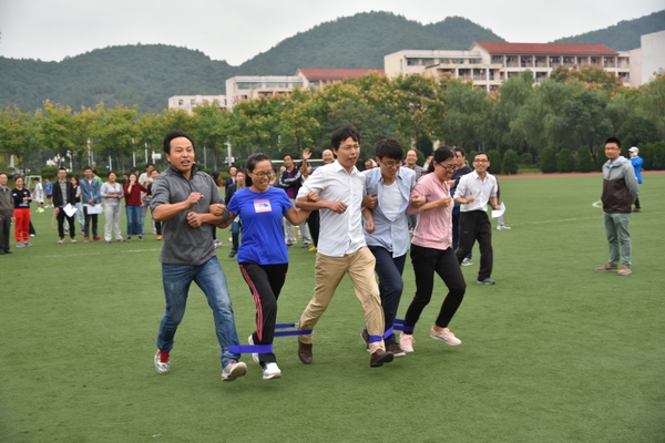 秉承“快乐、趣味、合作”的宗旨,此次运动会安排了车轮滚滚、飞镖投准、五人六足、跳大绳、旱地龙舟、旋风跑、迎面接力、趾力前行等八个趣味项目的比赛。比赛中,学院教职工各显其能:迎面接力中步履矫健、跳大绳时身轻如燕、飞镖定投全神贯注……整个比赛气氛热烈,精彩迭起,寄快乐于运动,寓健身于趣味,让繁重的工作压力在欢呼雀跃的瞬间得以释放。