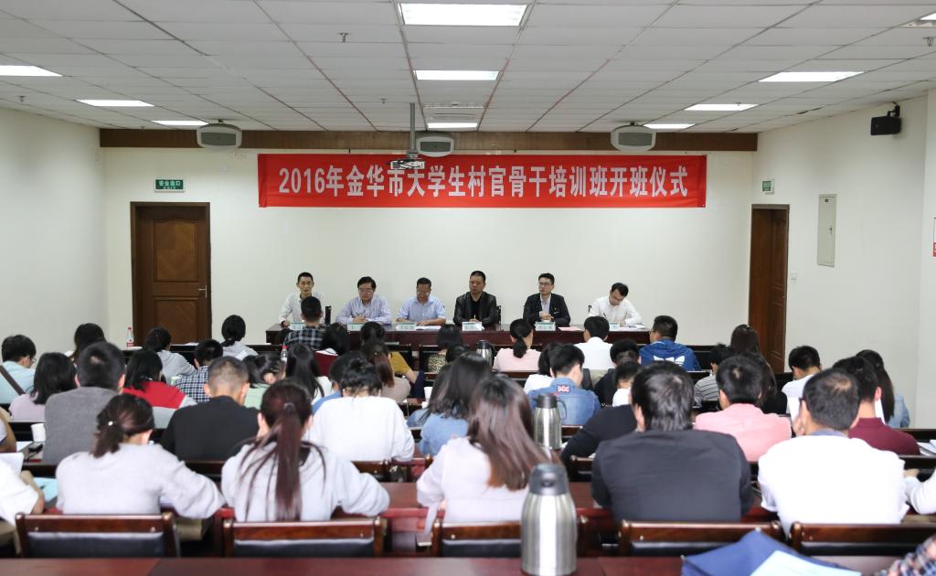 10月10日下午,金华市大学生村官骨干培训班在BEAT365开班,本次培训班由金华市委组织部和村官学院联合举办。校党委副书记、村官学院院长史永安,金华市委组织部副部长胡小荣,法政学院院长、村官学院常务副院长王长金,以及学工部、团委相关负责人和金华各县、市(区)委组织部相关人员出席了本次活动,金华市50名大学生村官骨干代表参加了本次仪式。