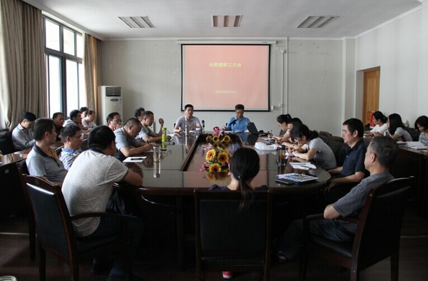 9月9日下午,理学院召开全体教职工大会,贯彻传达暑期校中层干部扩大会议精神,部署学院新学期工作。会议由党总支书记余树全主持,全院教职工参加了会议。