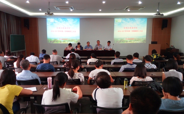 9月9日,环境与资源学院新学期全院教职工大会在碳汇楼101召开。会议由学院党总支书记韦新良主持。