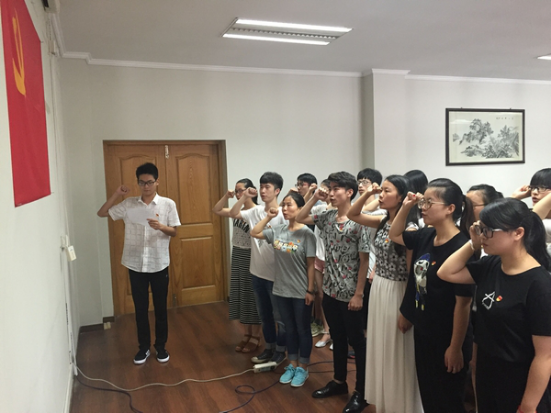 6月29日晚,理学院党总支于学院“党员之家”举行2015-2016年度新发展党员入党宣誓仪式,17名新发展党员面对党旗庄严宣誓。