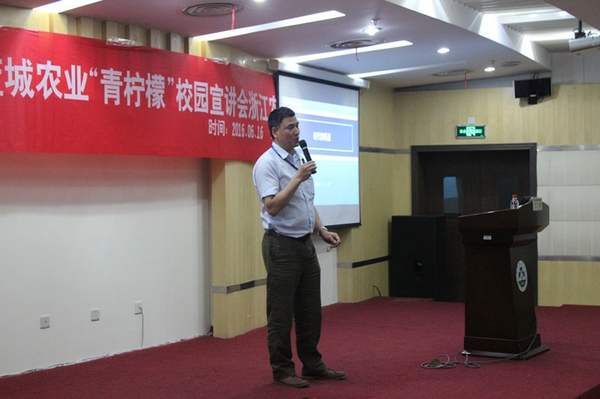 6月16日下午,蓝城农业“青柠檬”校园宣讲会在BEAT365东湖校区举行,农学院院长朱祝军、学院学生工作负责人与学生代表们一起参加了本次宣讲会,蓝城农业有限公司总经理谷建潮及总经理助理叶晖结合自身经历和就业的相关话题,与在座师生进行了交流。