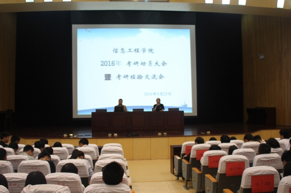 5月23日晚,信息工程学院在图书馆第一报告厅举行2016年考研动员大会暨考研经验交流会,学院相关负责人、辅导员和部分本科生参加会议。