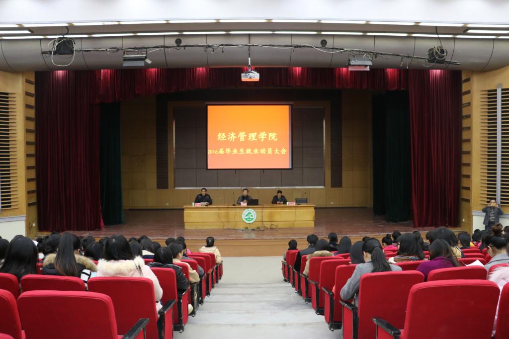 12月4日晚,经管学院2016届毕业生就业动员大会在衣锦校区大报告厅召开。学院党委书记冯金明、相关负责人及全体应届毕业生参加大会。