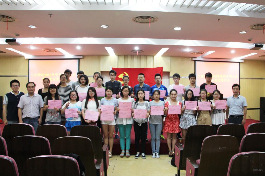 6月23日晚,工程学院学生党建工作指导委员会在图书馆第二报告厅举行入党宣誓仪式暨2015年“红旗党支部、星党员、党员示范寝室”评比表彰大会活动。学院党委书记倪建均、学生办老师、新发展党员及第51期党校学员出席本次大会。