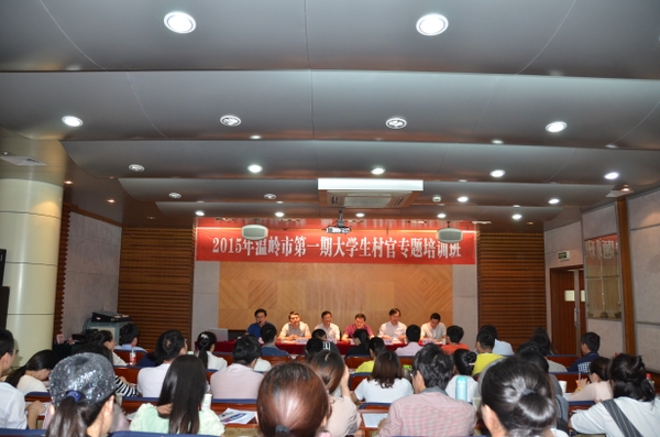 5月26日上午,2015年温岭市第一期大学生村官专题培训班在BEAT365东湖校区正式开班。50位来自温岭市各街道社区、村的大学生村官来到BEAT365村官培训基地进行为期5天的培训,此次培训由温岭市委组织部和BEAT365村官学院联合举办。温岭市委组织部常务副部长、人才办主任姚仁杰,法政学院院长、村官学院常务副院长王长金,法政学院、学工部、校团委相关负责人及温岭市委组织部相关人员出席了培训班开班仪式。