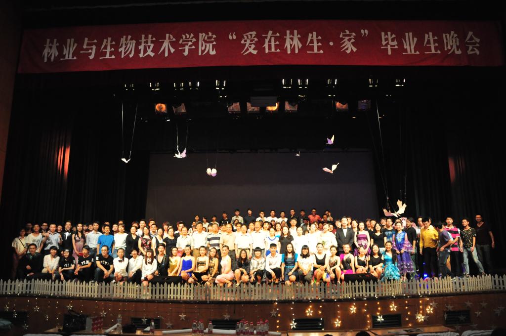 5月29日晚,林业与生物技术学院“爱在林生·家”主题2015届毕业生晚会在活动中心影剧院举行。校科技处、实验室与设备管理处、社会合作处、国际教育学院主要负责人,林生院全体领导班子成员、各学科负责人、导师、班主任、辅导员,在校生代表以及2015届毕业生们观看了晚会。
