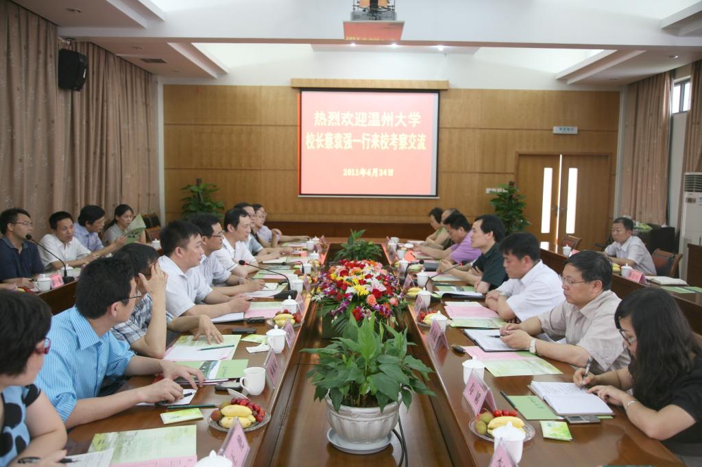 6月24日,温州大学校长蔡袁强一行十七人来校考察交流。校党委副书记宣裕方,副校长张立钦,校党委委员、科技处处长陈永富等接待了来访客人并与之座谈。