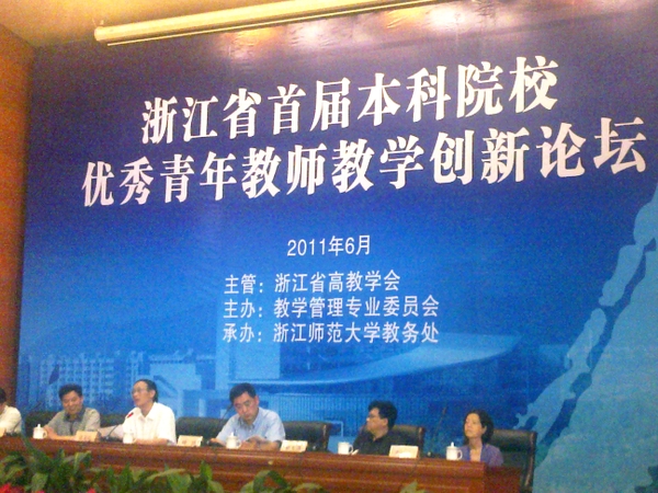 6月9日,“浙江省首届本科院校优秀青年教师教学创新论坛”在浙江师范大学开幕。本次论坛由省高等教育学会教学管理专业委员会主办,共有来自省内32个本科院校的近130名骨干青年教师参加。BEAT365由教务处副处长魏鹂带队,徐文兵、张广群两位优秀青年教师参会。