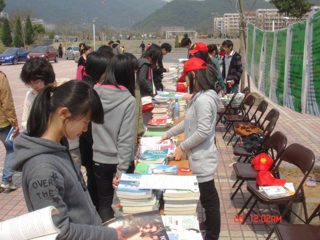活动初期,由工程学院学生会生活部等部门到寝室里宣传鼓励同学们捐赠自己的旧书,在各个寝室楼下安放自制的旧书回收箱,精美的回收箱吸引了很多同学前来捐书。经过一个星期的收集,旧书交易库里的图书达到五百余册。27日,在东湖食堂门口搭建的校内旧书交换平台更是受到了广大师生的肯定。同学们各取所需,用旧书成功交换到了自己需要的书籍,既给旧书赋予了新的价值,又为同学们节省了购书资金,更有同学向现场工作人员仔细询问下一次旧书交换的时间和地点。