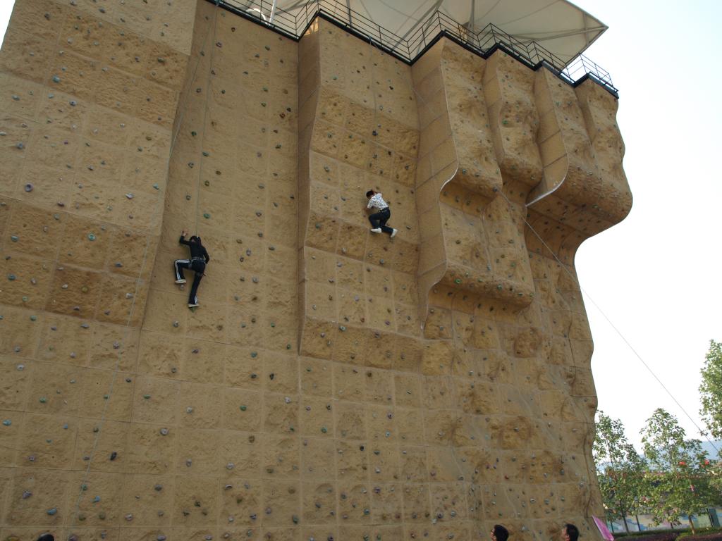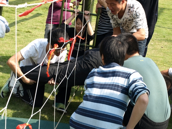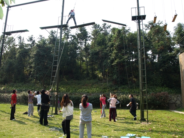 队员们在教练的带领和指导下,在规定时间内完成了同心桥、穿越电网、信任背摔、攀岩、毕业墙五个项目。“同心桥”克服了队员们的心理障碍,提高了队员超越自我的能力;“信任背摔”考验了队员之间的相互信任;最后的“毕业墙”项目体现了队员们甘为人梯、勇于奉献的精神。