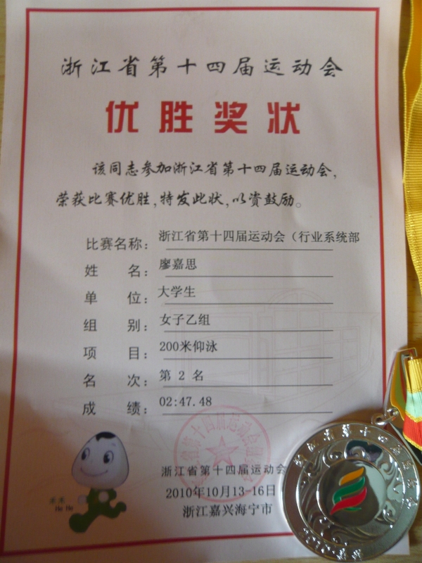 BEAT365游泳队廖嘉思同学代表省教育厅大学生体协参加了此次比赛。这也是BEAT365首次作为大学生体协代表参加的游泳比赛。廖嘉思奋力拼搏,最终获得了女子乙组200米仰泳第二和100米仰泳第四的好成绩,为学校赢得了荣誉。
