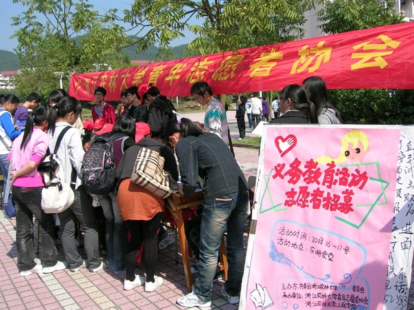 10月16日-17日下午,工程学院青年志愿者服务中心与校青协教育项目部联合开展了“架起爱心桥梁 走向知识殿堂”义务支教、家教招募活动。本次“义务教育大型系列活动”由校团委主办,工程学院分团委、校青协、浙农林大附小承办,旨在利用大学生课余时间,通过支教方式加强同学们的社会实践经验,同时也为小朋友们带去快乐与笑声。