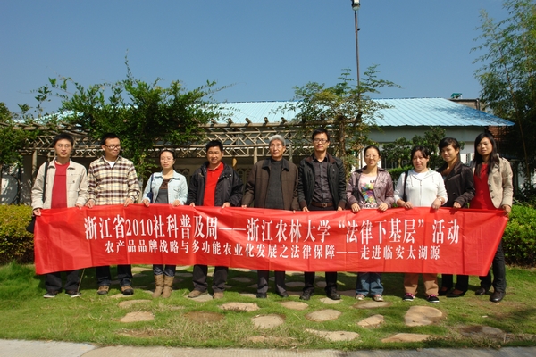 近日,为了响应省委宣传部和省社科联2010年浙江省社会科学普及周活动的号召,人文学院部分教师和学生开展了主题为“农产品品牌战略与多功能农业化发展之法律保障——走进临安太湖源”的人文社会科学下基层活动。