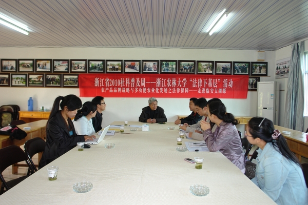 期间,众师生与杭州临安太湖源观赏竹种园有限公司的主要领导、员工及当地的农户进行了交流互动;几位教师作了主题为“品牌建设的作用”、“保护植物新品种权”、“完善企业劳动合同法”及“保护农业知识产权战略”的发言;最后,当地的员工和农户们就相关问题进行了法律咨询。