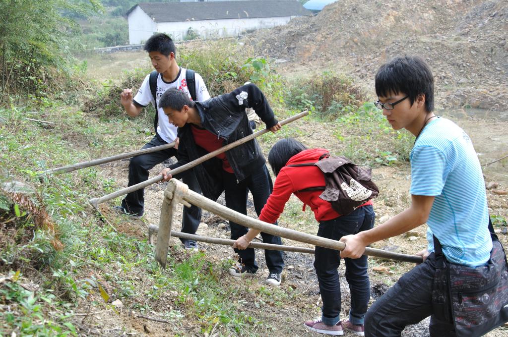 下午,大家扛起农具,到老人刚承包的竹林里帮忙翻耕,锄草,虽然只有短短的一个小时,但大家深深体会到了劳作的辛苦。同学们还来到敬老院为孤寡老人们剪指甲、捶背、梳头,送上诚挚的慰问与关爱。