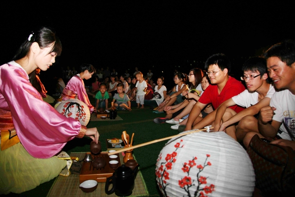 近日,第二届校园版“心灵茶会”——“绿草地与脚丫子的‘月会’”在东湖校区B区田径场成功举办。本次心灵茶会是由茶文化学院茶文化082班自主策划、组织、执行的一次学生茶文化交流活动,整个活动过程中吸引了包括学生、教师、留学生以及临安市民等一百多人参加,获得大家的赞赏。