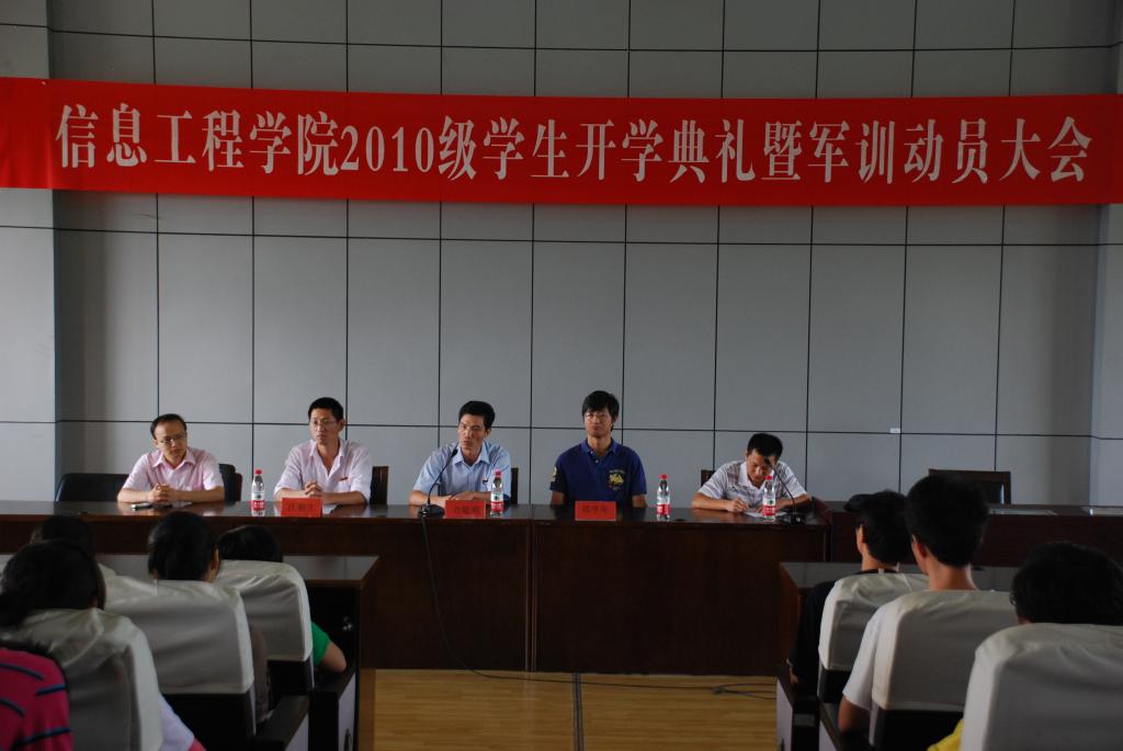 9月14日上午8:30分,信息工程学院在学院报告厅举行2010级新生开学典礼暨军训动员会。