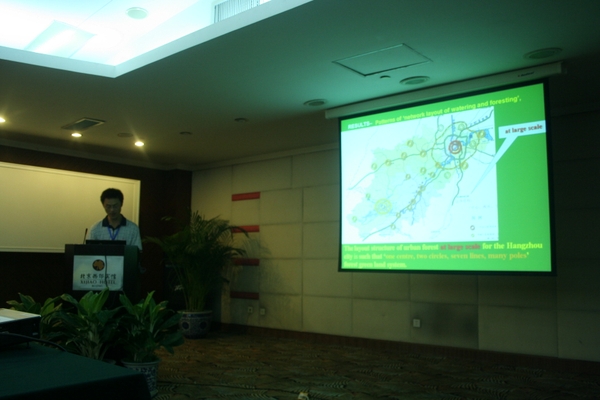 蒋文伟博士在会上作了“Planning of Urban Forest Construction Guided by Landscape Ecology to Hangzhou city, Zhejiang Province,China”报告,介绍和展示了园林学院近年来承担的杭州、宁波、义乌、临安等国家级和省级森林城市规划建设及研究成果。