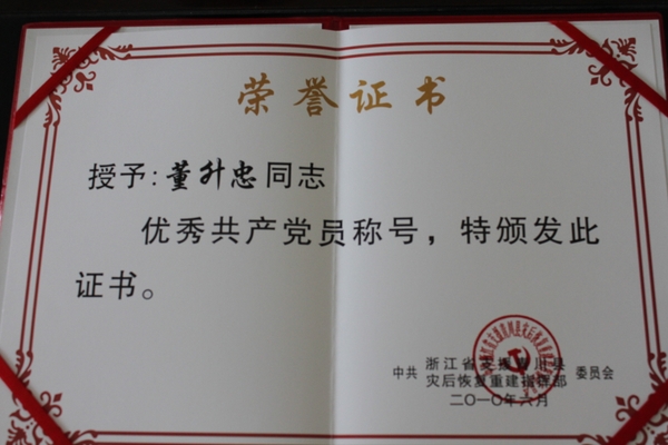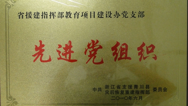 在“七一”建党节表彰大会上,中共浙江省援建指挥部党委授予教育项目办党支部“先进党组织”、董升忠同志“优秀共产党员”荣誉称号。