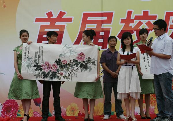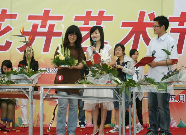 伴着优雅的古筝琴声,“绿动东湖,花舞五舟”花卉艺术展示会正式开始。舞台上,来自园林学院得16位研究生同学同台竞技插花艺术,其中“力争上游”、“春风得意马蹄疾”作品获得一等奖。台下,书法名家现场挥毫泼墨,即兴创作了《春色满园》报春图和《锦绣前程》牡丹图等;工艺师现场制作了“文”、“武”两棵工艺树,“文松”婀娜多姿、亭亭玉立,“武松”刚劲挺拔、苍劲有力。由古树公司制作的“生态地球村”地球仪花球,也首次在展示会上“亮相”。此外,“校园十佳歌手”代表也前来为本次校园花卉艺术节献歌助兴,优美的歌声博得在场观众的阵阵喝彩。