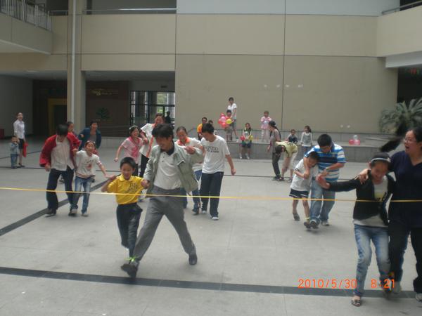 一到会场,孩子们就被五颜六色的气球和现场播放的精彩动画片吸引住了,对活动充满了期待。按年龄分组后,小朋友们和父母一起参加了“两人三足”、“运气球”、“推小车”等游戏,活动现场,加油声、呐喊声、欢笑声融为一体,汇聚成一片欢乐的海洋。游戏结束后,孩子们高高兴兴地拿着节日礼物,与父母们一起品尝了接待中心为他们精心准备节日美食。