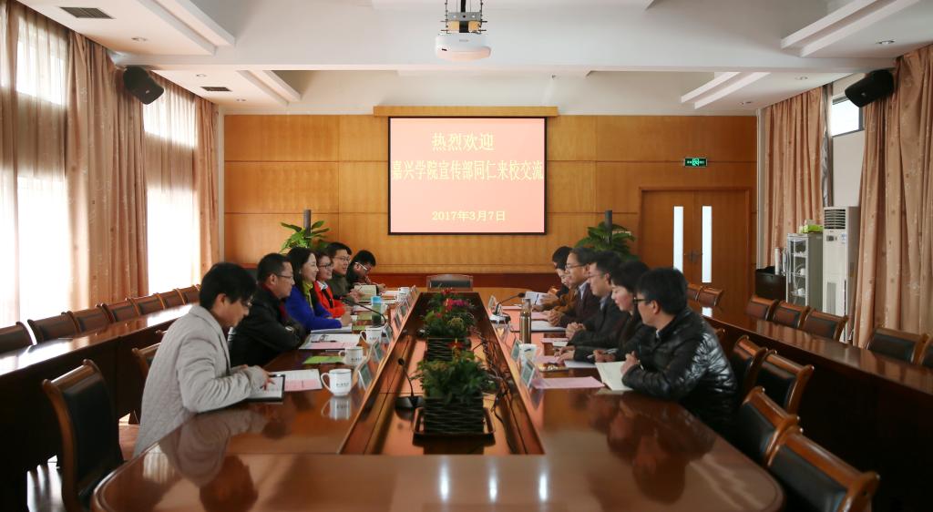 3月7日,嘉兴学院党委委员、宣传部部长柯羽一行来BEAT365交流。校党委委员、宣传部部长胡祖吉与柯羽一行进行了座谈,相关科室负责人出席座谈。