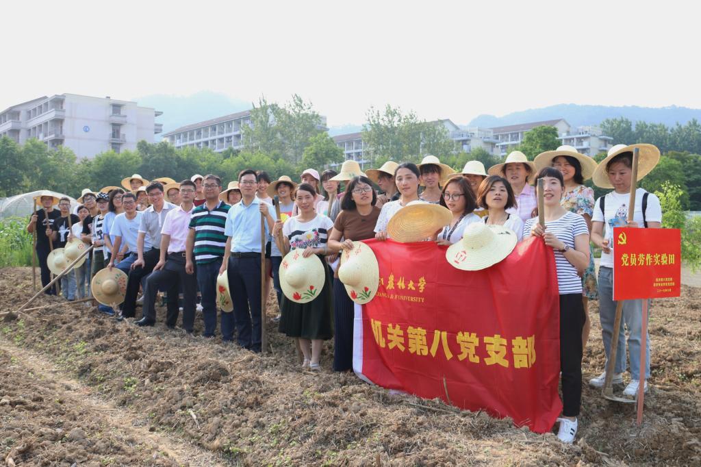 近日,学校机关第八党支部与农学院农学专业学生党支部结对在农作园开展耕作劳动,共建党员劳动田。