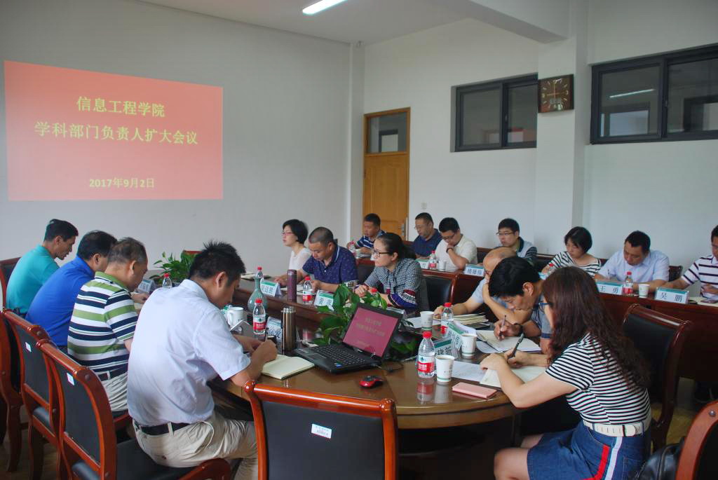 9月2日,信息工程学院召开部门负责人扩大会议,聚焦学校中层干部会议精神,围绕“脚踏实地、狠抓落实,胸怀大志、深谋未来”这一主题,寻求学院快速发展之路。会议邀请了研究生院院长黄坚钦、教务处处长梅亚明出席。