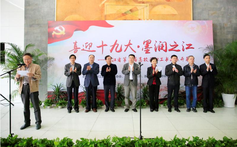 10月16日下午,由省教育工会主办,省教育书法协会、浙江工业大学、省书法家协会教育委员会承办的“喜迎十九大·墨润之江”省第三届高校教职工书画展在浙江工业大学屏峰校区开幕。