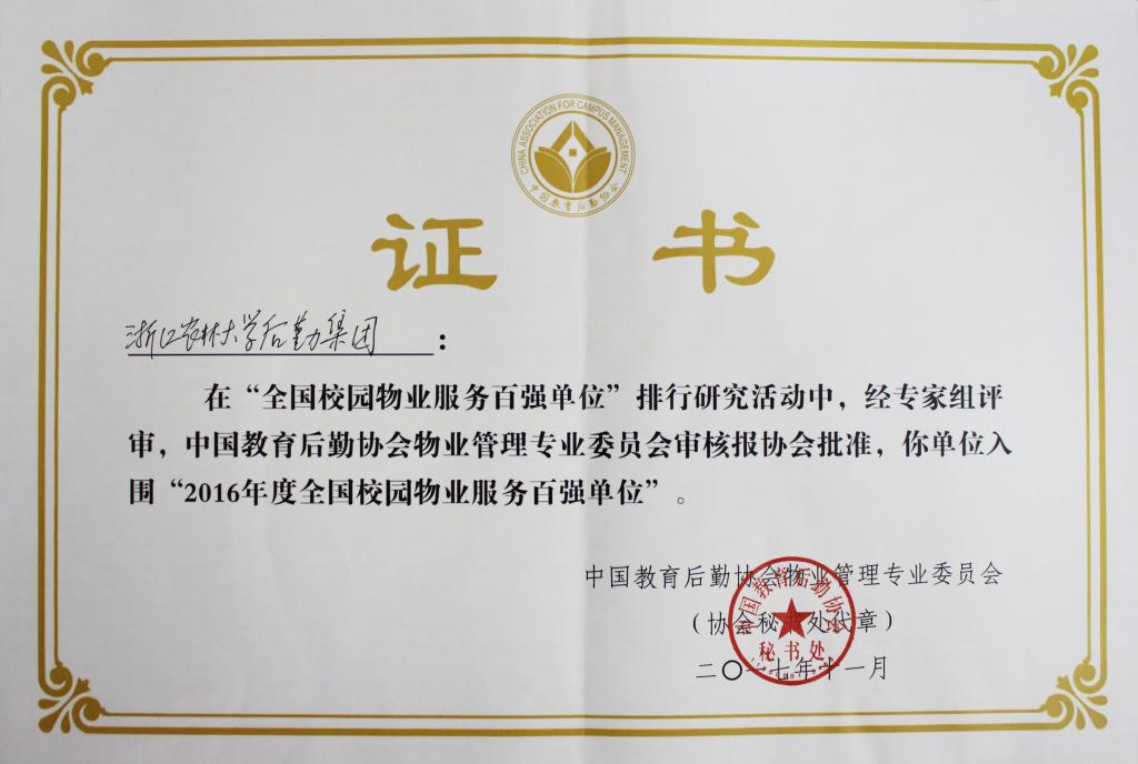 本次校园物业服务百强单位有来自全国22个省市的校园物业企业和后勤实体参加。物业服务中心积极准备,认真完成《2016年度全国校园物业服务发展报告》数据采集、事迹材料、业务管理和特色服务等各类材料的收集和申报工作,经资料审核、专家评审等环节,成功入选“全国校园物业服务百强单位”(后勤实体30强)。