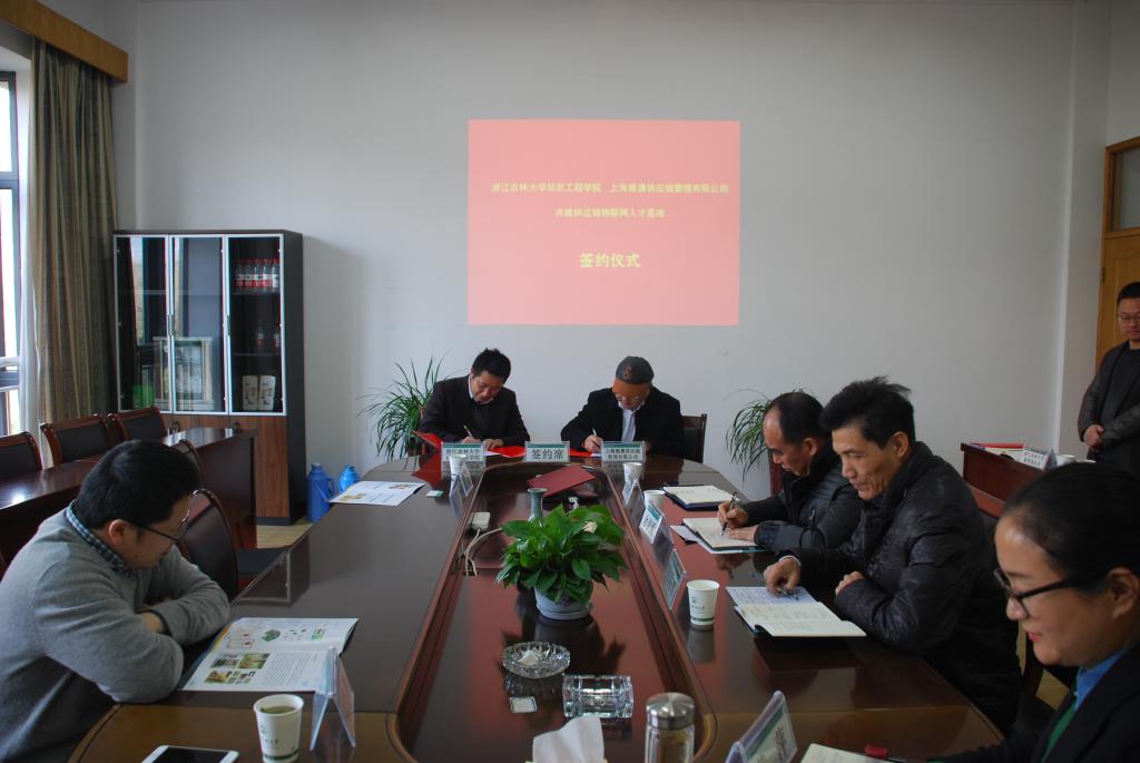 仪式上,徐爱俊代表信息学院与雅澳公司签定共建供应链物联网人才基地框架协议,双方约定以物联网专业教育和科研资源为依托,共同建设行业人才培训基地,建立实训项目库和人才服务平台,形成专业与产业相互促进、共同发展,努力实现“校企合作、产学双赢”。