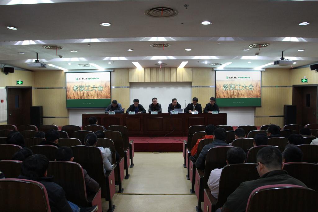 连日来,农学院相继召开教职工大会和学院三届四次教职工暨工会会员代表大会,总结一年来学院各项事业发展,分析面临的形势和机遇,对寒假工作和2018年学院工作进行总体部署。