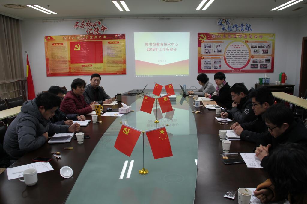 3月2日,图书馆、信息与教育技术中心召开2018年工作务虚会,研究并部署新学期工作。
