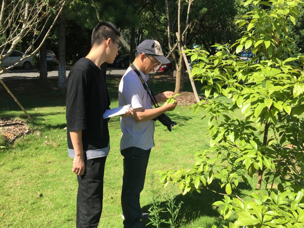 在相关中学负责人的带领下,学院师生走遍中学校园的每一个角落,对各类植物进行辨别、归类、记录并制作植物名录。中学生物组老师还和同学们参与了“与教授一起挂牌”活动,悬挂起一块块BEAT365英国官网优质生源基地植物铭牌。大家只需用手机扫一扫铭牌上的二维码,即可关注BEAT365的信息动态,并可以在植物数据库中得到该树种的详细信息,使用极为方便快捷。此外,学院师生在植物辨认和挂牌过程中就各中学的绿化、植物栽培及病虫害防治等方面提出建议。