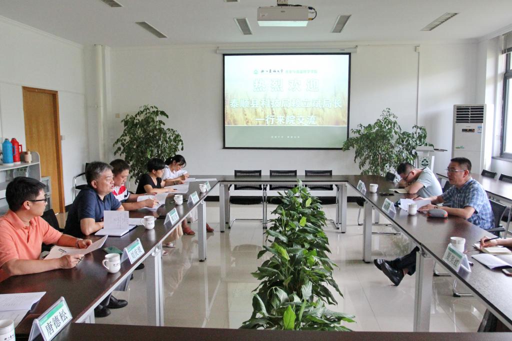 9月5日,泰顺县科技局局长赖立斌一行来农学院,就合作共建泰顺县乡村振兴研究院事宜进行洽谈。校合作处处长戴文圣、学院常务副院长刘兴泉、相关负责人、科技特派员代表等参加了会议。