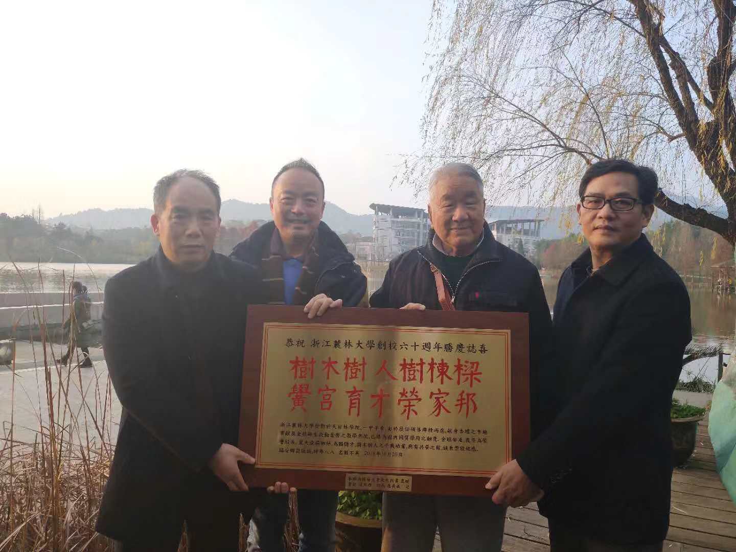 校庆前夕,台胞陈每文先生收到学校的校庆邀请函后,因身体欠佳,未能如约参加校庆庆典活动,陈老先生深感遗憾。在给学校领导的电子邮件中,老先生写到:“贵校自创立‘天目林学院’一甲子来,由于历任领导殚精竭虑,无保留的贡献,及全校老师同学认真教学,成为国内同质高校中的翘楚,请接受个人最高的崇敬。并祝树木树人,为国储才千秋功业,更上层楼。”