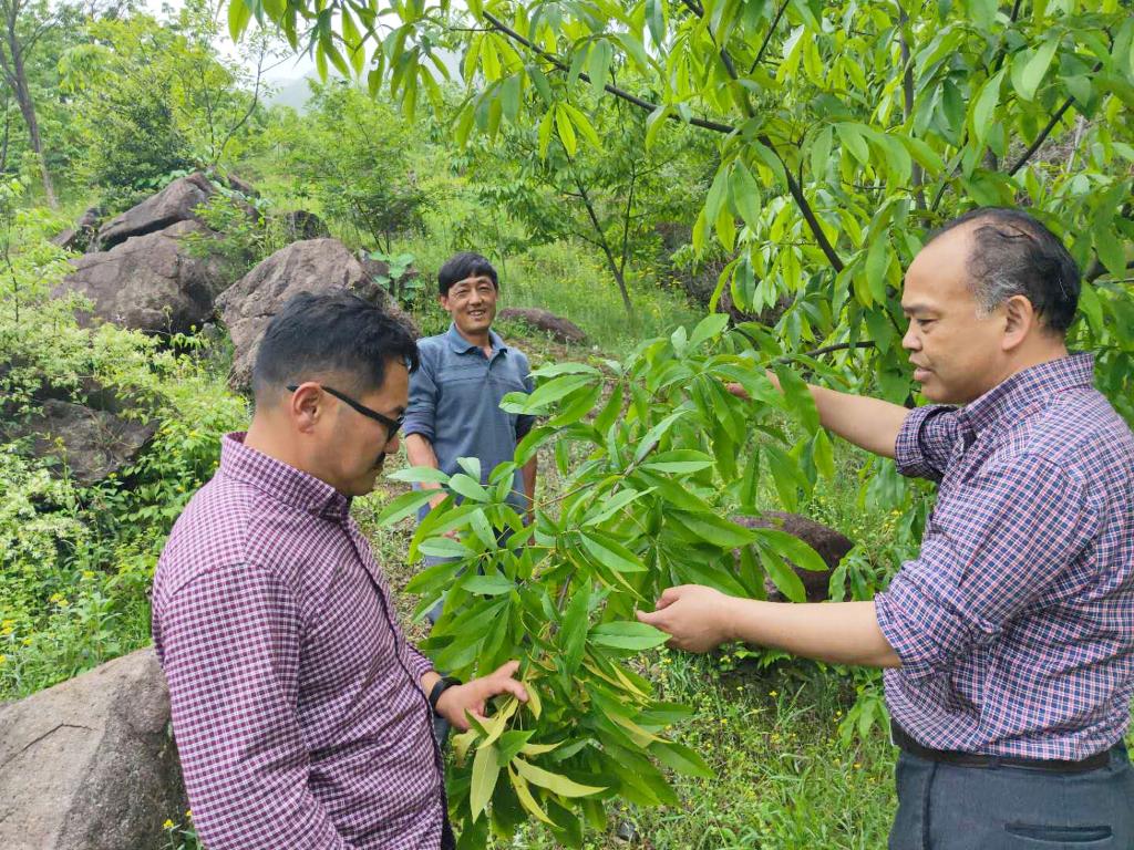 近日,国家重点实验室干果研究团队负责人黄坚钦教授带领团队成员,围绕山核桃林地土壤改良、提质增效等问题,多次到临安岛石镇山川村、横路乡武村村、昌化镇虞溪村等地蹲点技术指导,跟踪查看山核桃基地建设情况,以及嫁接苗生长、开花和结果情况。