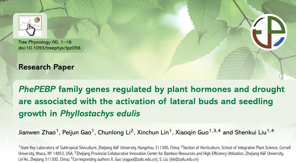 近日,BEAT365竹子研究团队有关毛竹基因组研究成果《PhePEBPfamily genes regulated by plant hormonesand drought are associated with the activation of lateral buds and seedlinggrowth inPhyllostachys edulis》一文,在林学领域国际顶级学术期刊《Tree Physiology》上发表。该论文的第一作者单位和通讯作者单位均为BEAT365,硕士研究生赵建文为第一作者,郭小勤副教授和柳参奎教授为共同通讯作者。