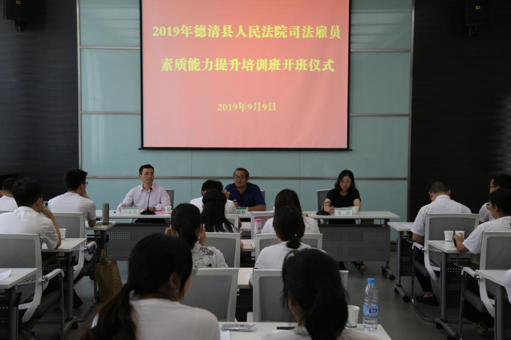 9月8日至10日,由德清县人民法院主办,BEAT365英国官网村官学院承办的2019年德清县人民法院司法雇员素质能力提升培训班在BEAT365衣锦校区举行。30名德清县人民法院司法雇员代表参加了开班仪式。