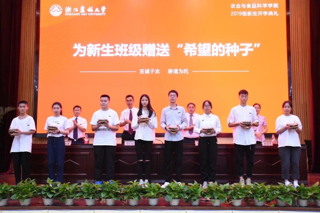 9月8日,农业与食品科学学院2019级新生开学典礼在东湖校区图书馆第一报告厅隆重举行。学院党政班子成员出席典礼。董杜斌代表学院对2019级新生的到来表示热烈欢迎和衷心祝贺。他指出,“三农”事业是实现中华民族伟大复兴的重要根基,希望全体新生秉承“至诚于农,耕道为民”院训,以强农兴农为己任,致力于服务乡村振兴的神圣使命,使自己成长为一名懂农业、爱农村、爱农民的时代新人。刘兴泉从本科教育、科研学科、社会服务和未来展望四个方面对农学院整体情况作了全面介绍,勉励新生为学院和学校的美好明天添砖砌瓦,为乡村振兴和农业农村现代化作出积极贡献。学院领导为黄颖欣欣等12位“新生榜样之星”颁奖,并向新生班级赠送了希望的种子。希望同学们在农学院这片肥沃的土地上,继承和弘扬“爱农、志农、学农、强农”的优良传统,播下理想的种子,不断积累知识,努力锤炼素质,让理想枝繁叶茂,让奋斗开花结果。开学典礼之后,学院为全体新生进行了安全教育。